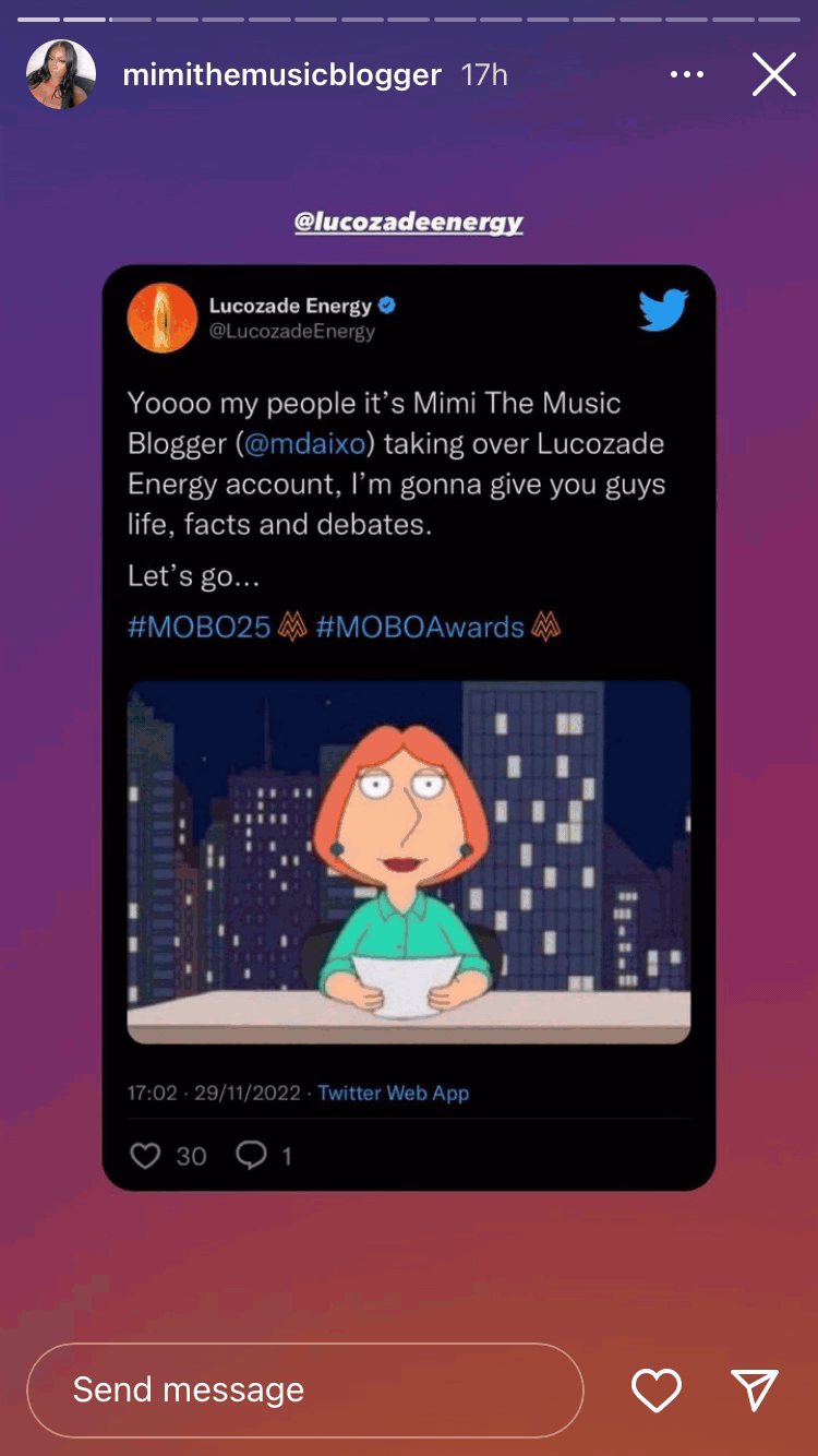 To launch Lucozade’s sponsorship of the iconic MOBO Awards, we hosted coverage of the awards across their social channels.
