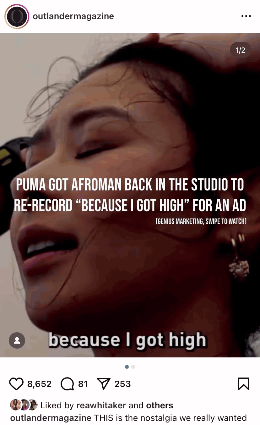 We launched PUMA’s biggest campaign to date with Afroman’s song ‘Because I Got High’ to land the truth - you won’t regret running because… it gets you high.